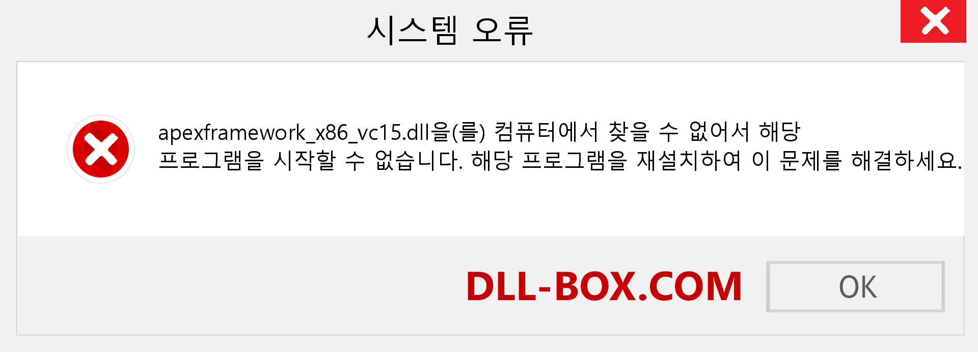 2. 시작하는 동안 문제가 발생했습니다. apexframework_x86_vc15.dll 지정된 모듈을 찾을 수 없습니다.